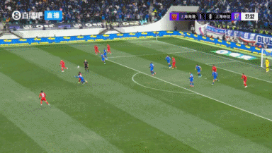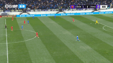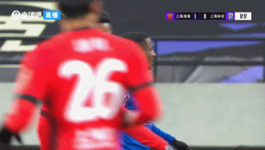 伤停补时2分钟。上半场比赛结束,上海海港1-0上海申花。